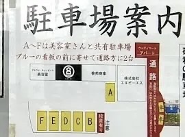 The store has a parking lot for six cars. This yellow-colored area is the parking space.