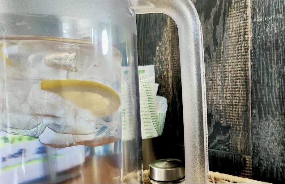 The water that is brought to you has lemon floating in it, and if you drink this water after eating curry, your mouth will feel refreshed.
