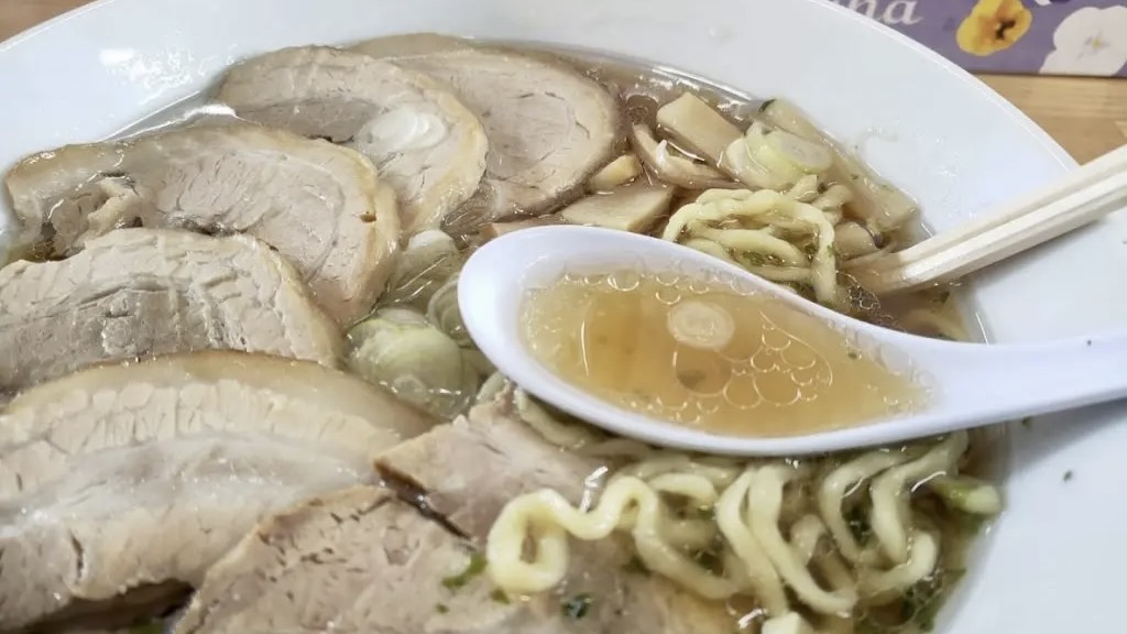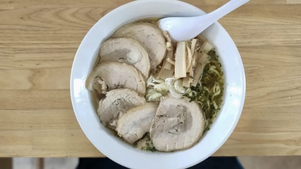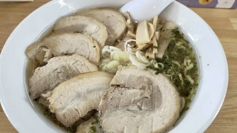 In addition to chashu pork, it also contains bamboo shoots and dried rock seaweed.