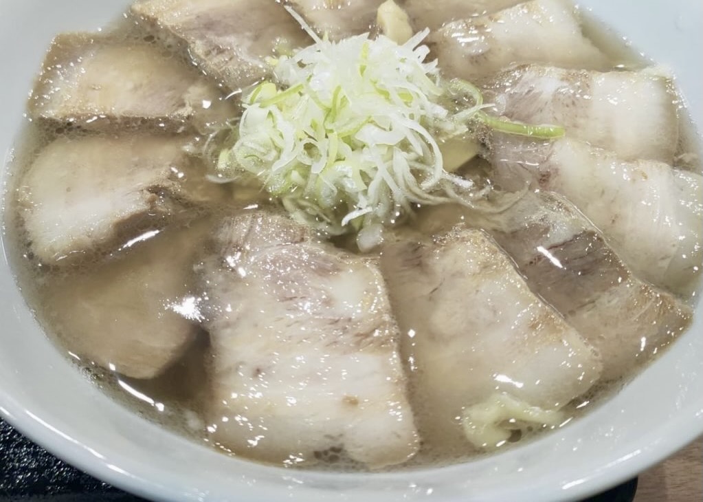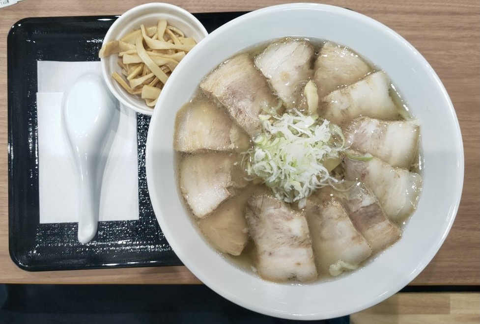 This is the algae salt chashu noodles, soft but with a strong meat flavor. With 12 pieces of evenly cut pork, it’s a hearty meal!