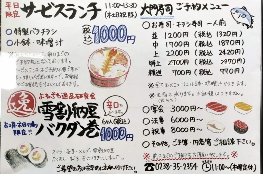 Daimon Sushi, located in Yonezawa City, is popular for its service lunch and delicious sushi.